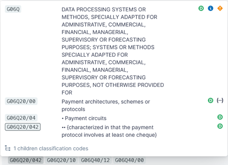 Parenthetical information is meant to redirect a user to other classifications and not shown in Quartet, but can be seen in full at each respective classification schedule page.- “Children” tells users that there are multiple indented classes. If a particular classification code is relevant, this gives the user a clue to explore other closely related children codes.
