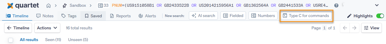 With the Command line, search commands may be entered into the Command line to run Boolean queries with their desired search fields and keywords as well as combining or excluding other search queries from the results (See operators). The enter key or the “Run Command” button will run the command, which can be viewed on the Timeline.