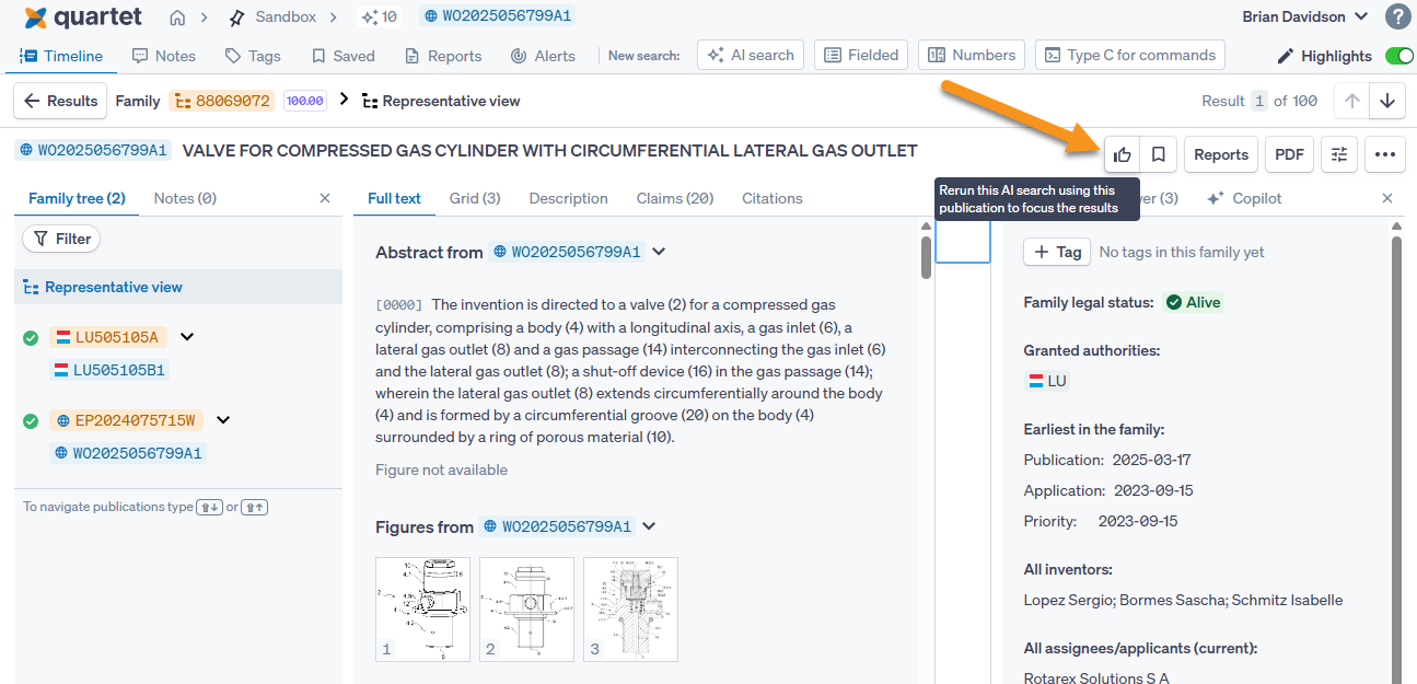 Focus and rerun will tweak AI results with references found while searching, or with already known references. These references supplement the original AI search with the additional information from the focus documents. The original AI Search will still be there, but there will be a new, additional search in the timeline, combining the disclosure of the original search with the new information from the provided focus.
