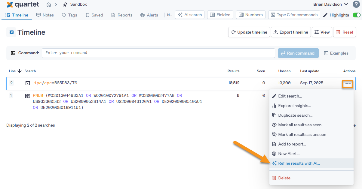 In addition to running a AI search as seen here, and focusing and re-running results to additional patent documents as seen here, there is an additional tool to help incorporate Quartets AI into patent searching.